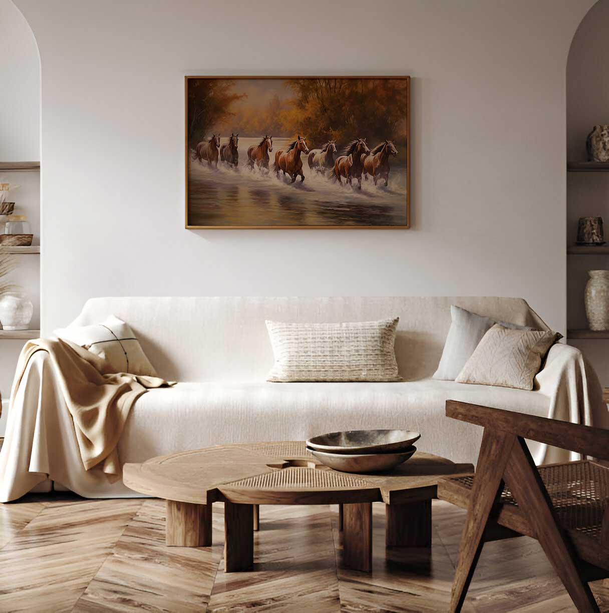 Elevate the energy of your home or workspace with this beautifully crafted 7 Running Horses Painting, inspired by the principles of Vastu Shastra. Known for symbolizing success, speed, and positive momentum, this artwork is more than just decor—it's a powerful tool to attract prosperity and growth.