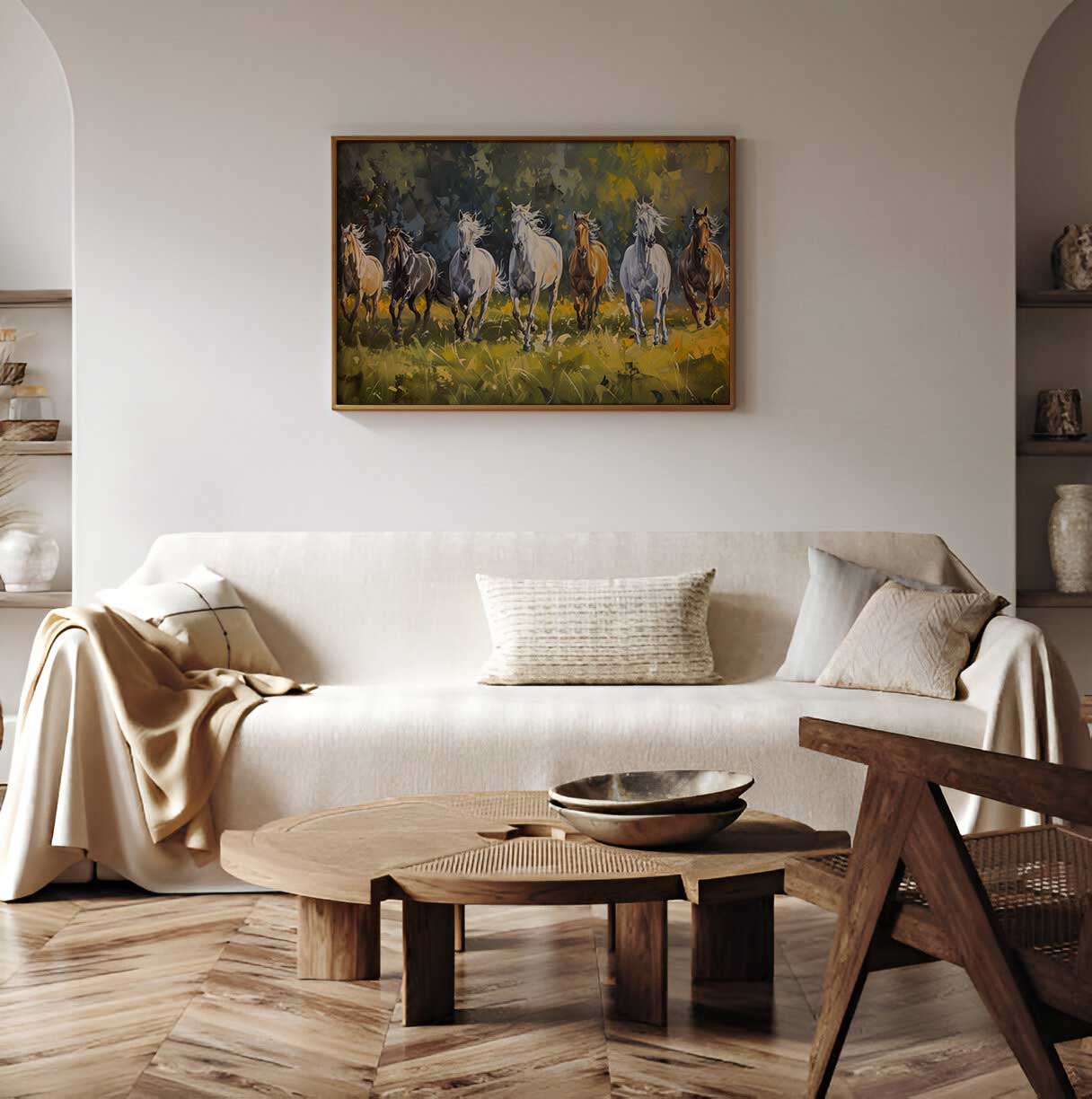 Elevate the energy of your home or workspace with this beautifully crafted 7 Running Horses Painting, inspired by the principles of Vastu Shastra. Known for symbolizing success, speed, and positive momentum, this artwork is more than just decor—it's a powerful tool to attract prosperity and growth.