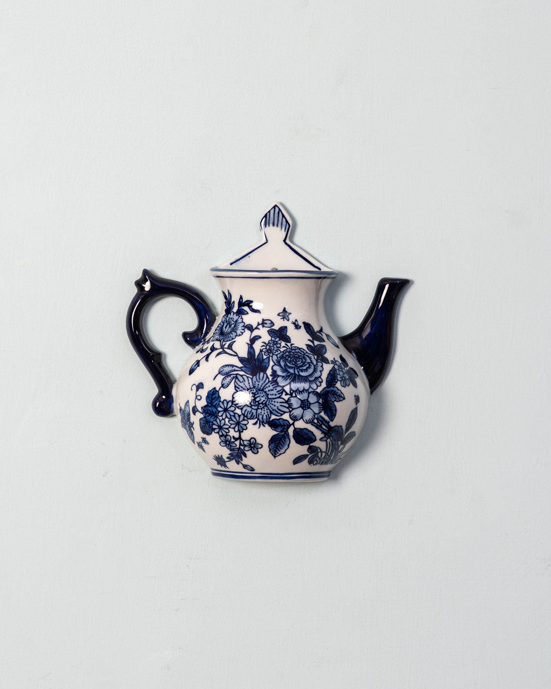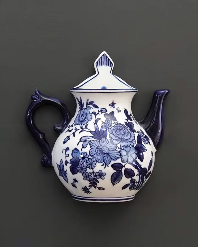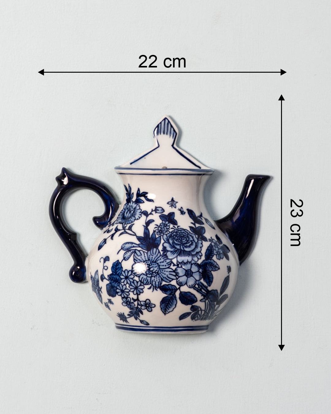 Painted in a traditional blue and white palette, this wall mounted kettle comes with a flat back and creates visual drama for your walls. Use this as a standalone wall accent or place your favorite flowers to create your own unique wall accent.