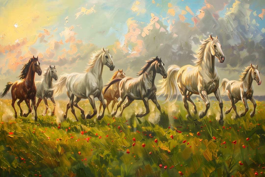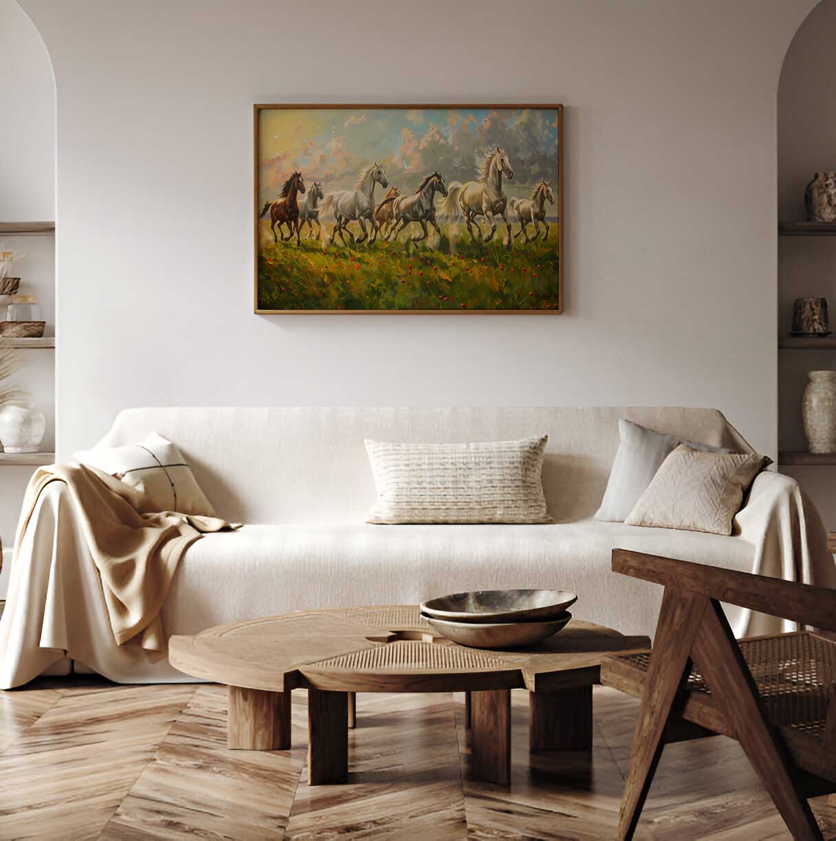 Elevate the energy of your home or workspace with this beautifully crafted 7 Running Horses Painting, inspired by the principles of Vastu Shastra. Known for symbolizing success, speed, and positive momentum, this artwork is more than just decor—it's a powerful tool to attract prosperity and growth.