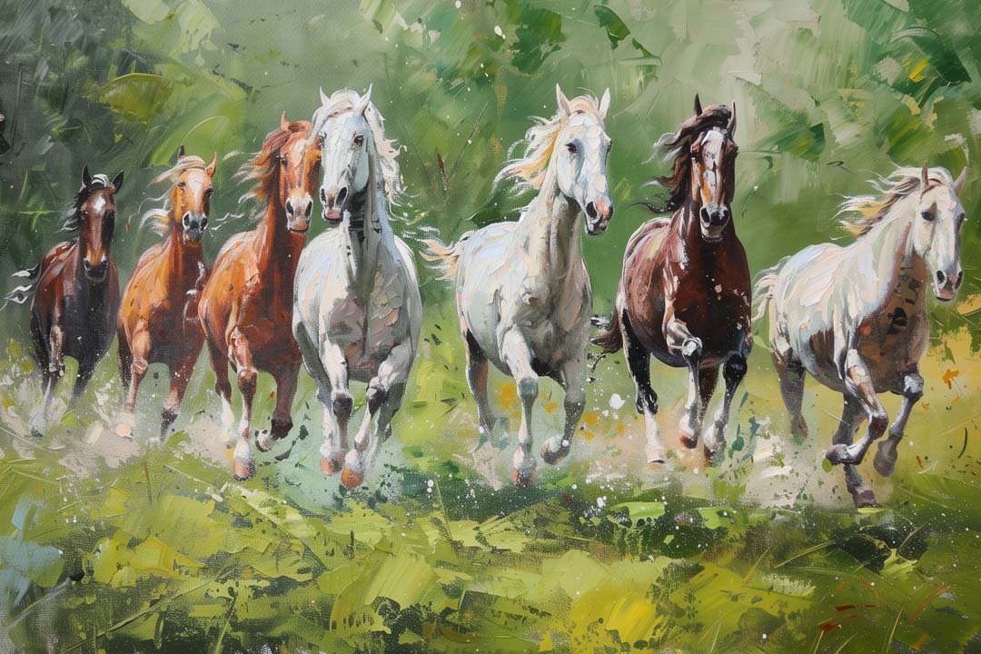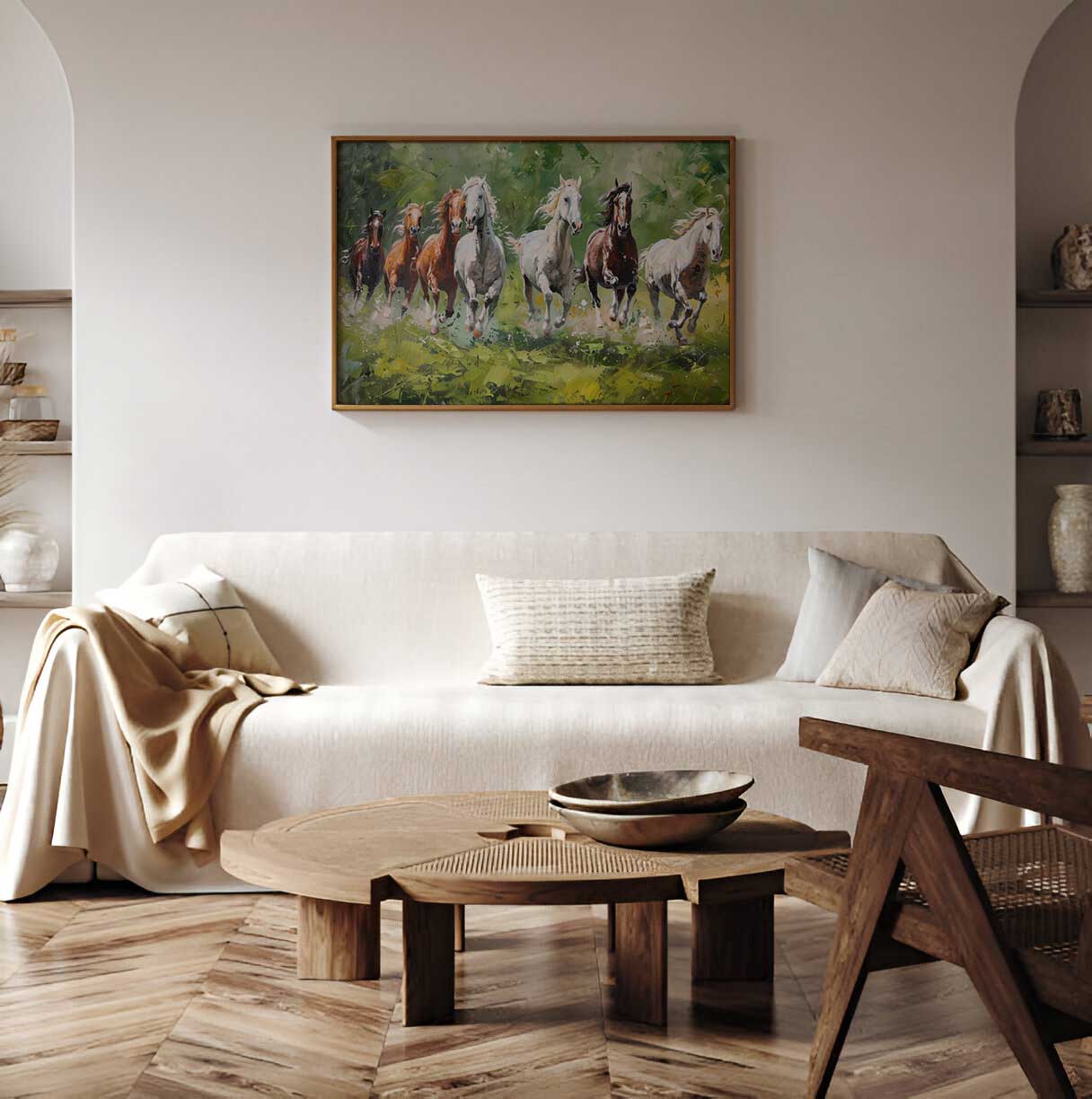 Elevate the energy of your home or workspace with this beautifully crafted 7 Running Horses Painting, inspired by the principles of Vastu Shastra. Known for symbolizing success, speed, and positive momentum, this artwork is more than just decor—it's a powerful tool to attract prosperity and growth.