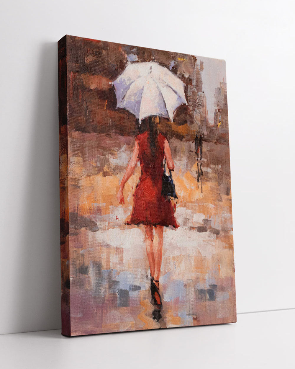 "Morden Art Umbrella Walk" Handmade Oil Painting 24"x 36"