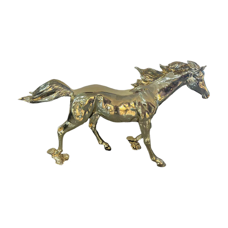 Unleash the spirit of freedom and power with the Silver Gallop Horse Sculpture, a masterpiece that captures the beauty and majesty of a galloping horse. Crafted from metallic finish resin, this radiant golden sculpture embodies strength, grace, and dynamic energy, making it a striking addition to any interior space.