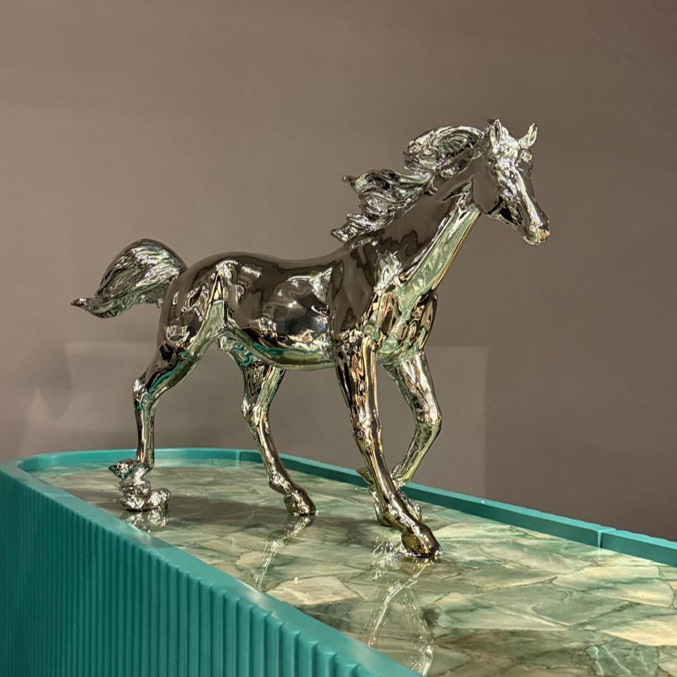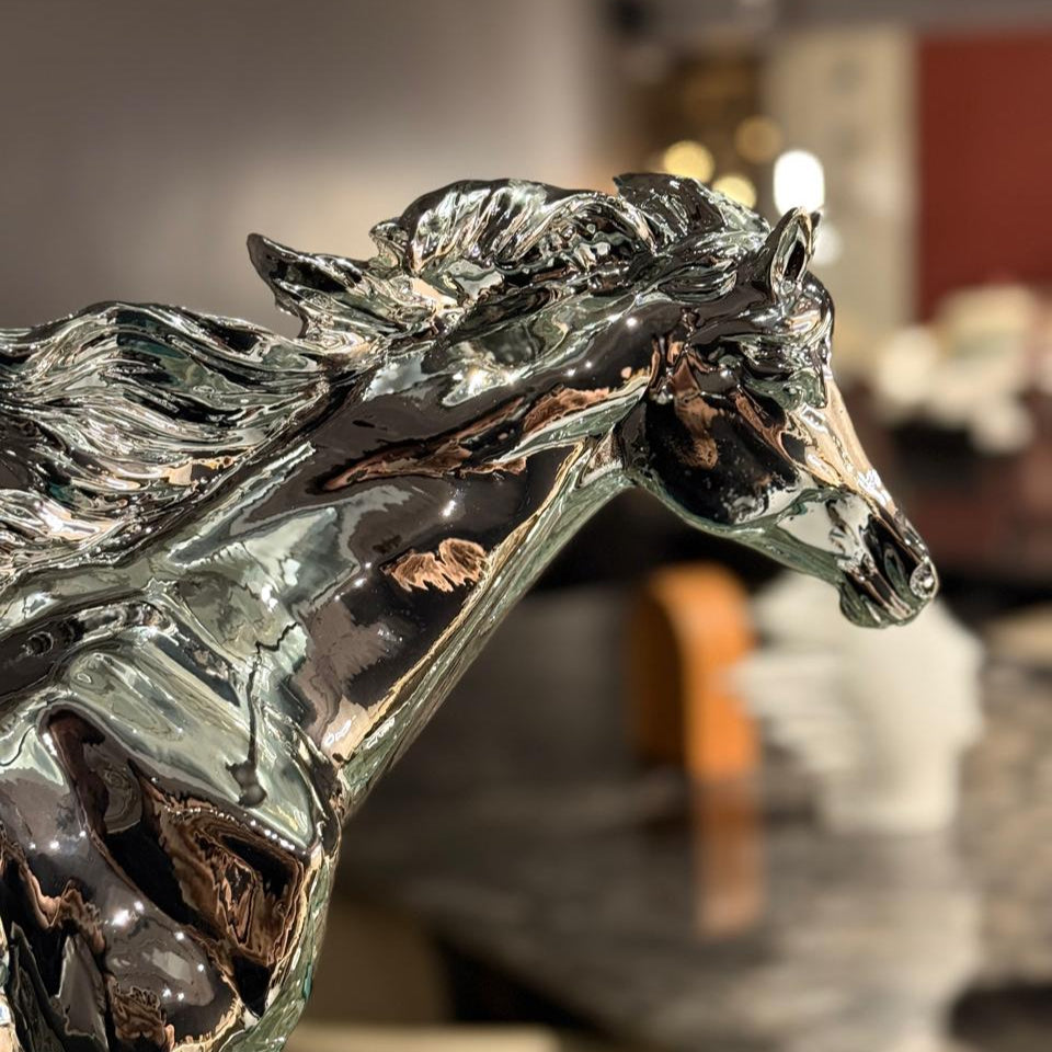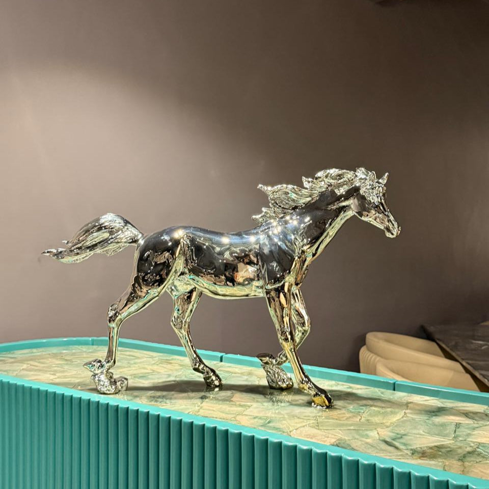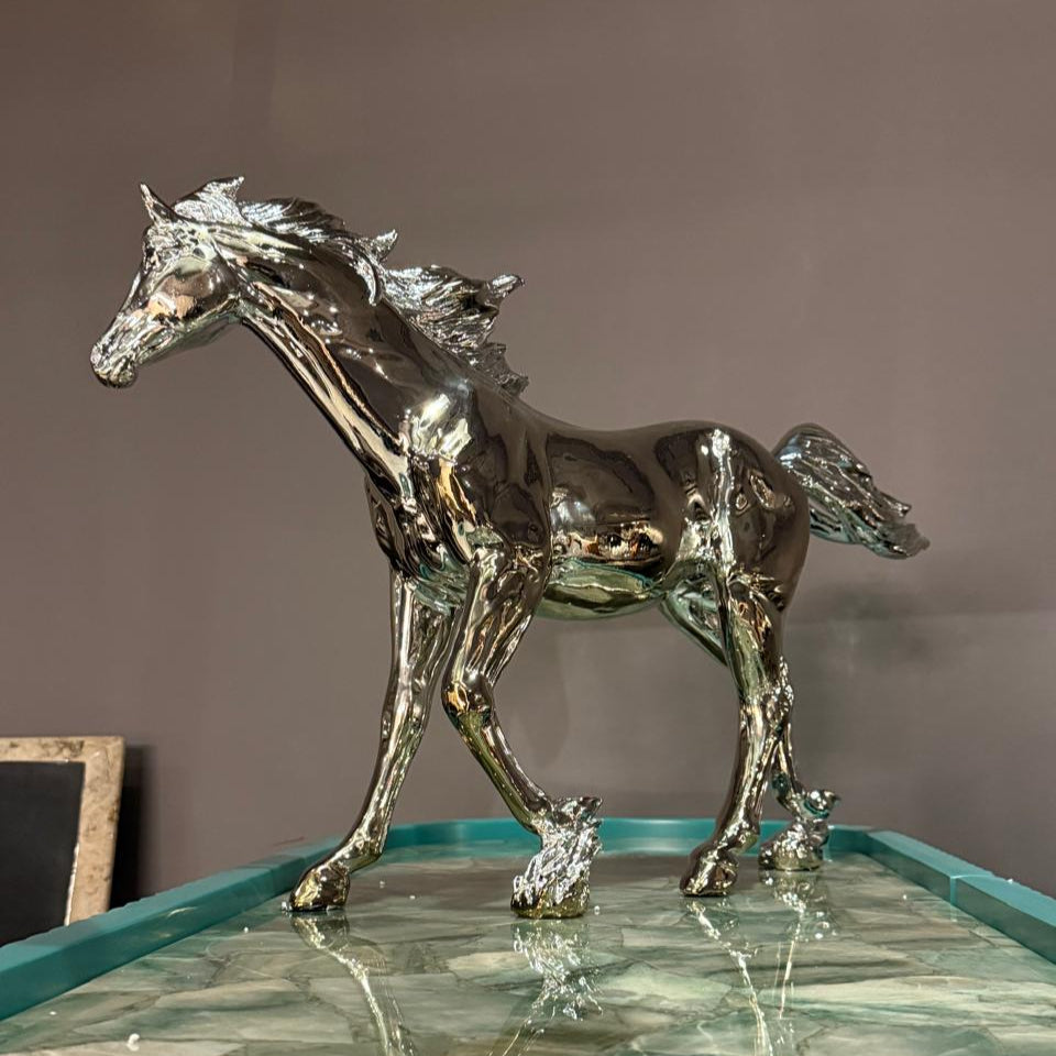 Ideal for living rooms, offices, or as a centerpiece in your decor, the Silver Gallop Horse Sculpture adds a sense of movement and sophistication. Its intricate detailing and luxurious finish make it a symbol of elegance and inspiration.