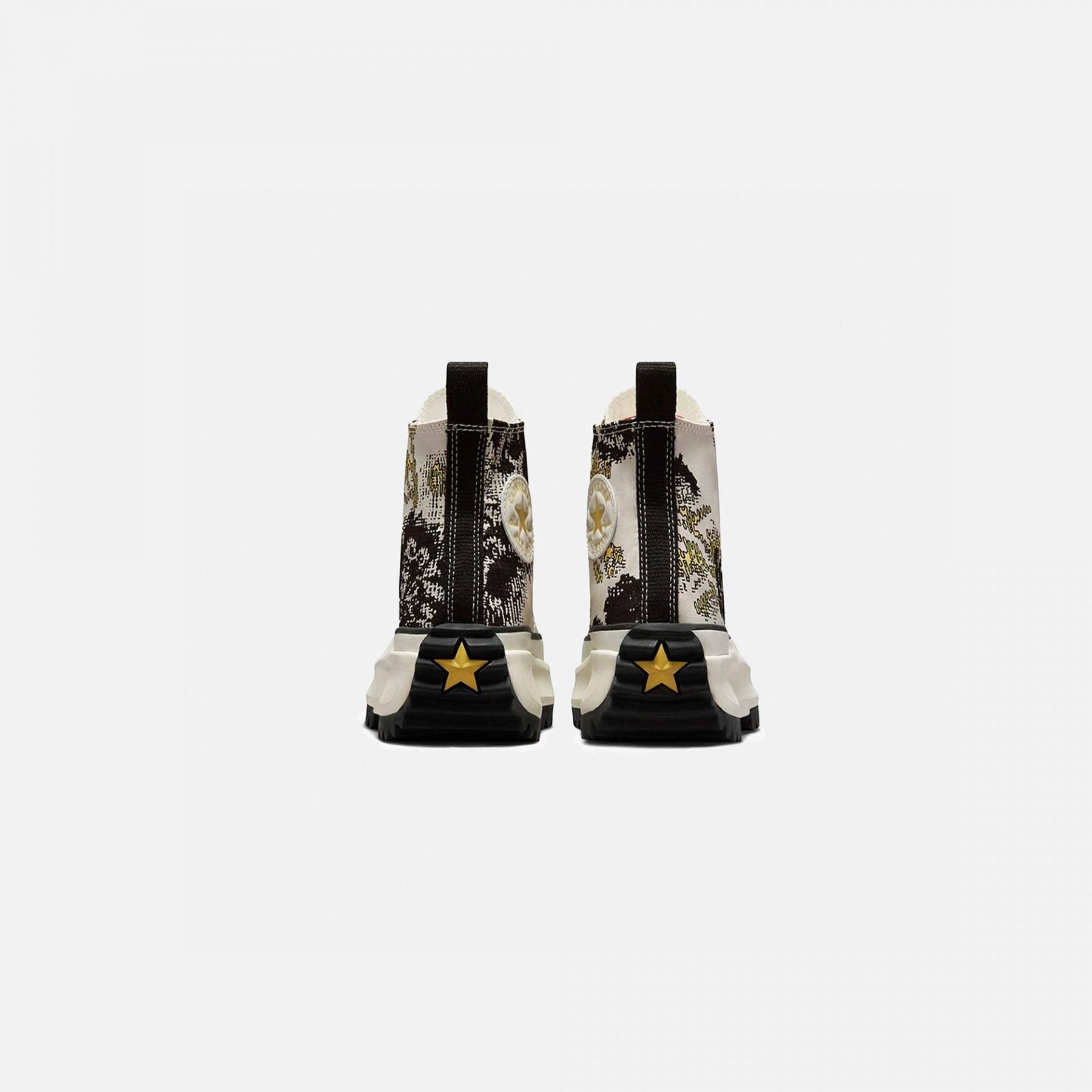 FRESH PICK. A three-colour, woven jacquard refreshes this season's Run Star Hike with textured fall florals, inspired by real dried and pressed wildflowers. An egret-coloured, platform midsole is topped off by a black pinstripe, which matches back to the saw-tooth outsole to create traction and style from below. With a contrast-coloured star on the heel for a defining look.